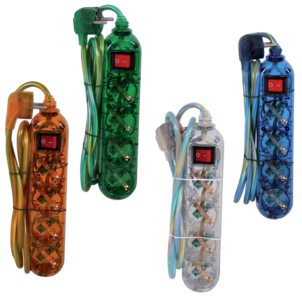 Πολύμπριζο 4 Σούκο,Διακόπτη,Ασφάλεια Παίδων,3×1.5mm2 1.5m,Χρωματιστό,Electropack,PVC με κρέμαση