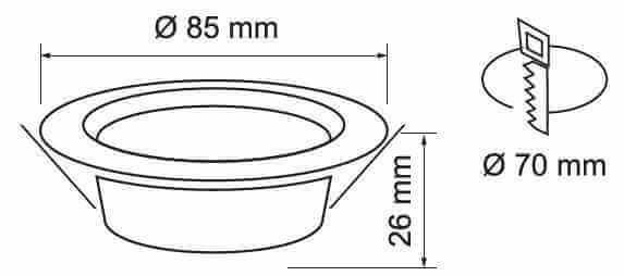 Διαστάσεις κοπής τρυπάς: Ø70 mm